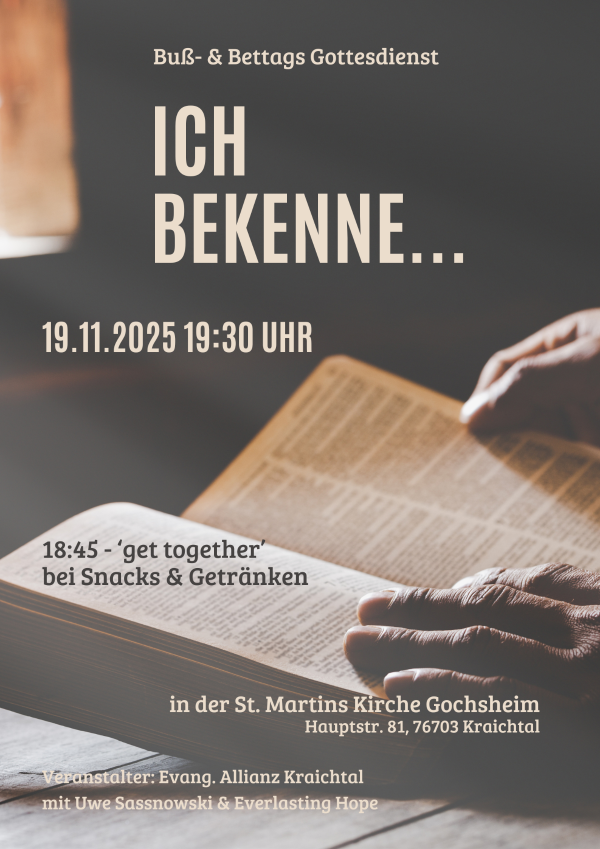 Herzliche Einladung zu einem modernen Gottesdienst am Buß- und Bettag, veranstaltet von der Allianz Kraichtal.